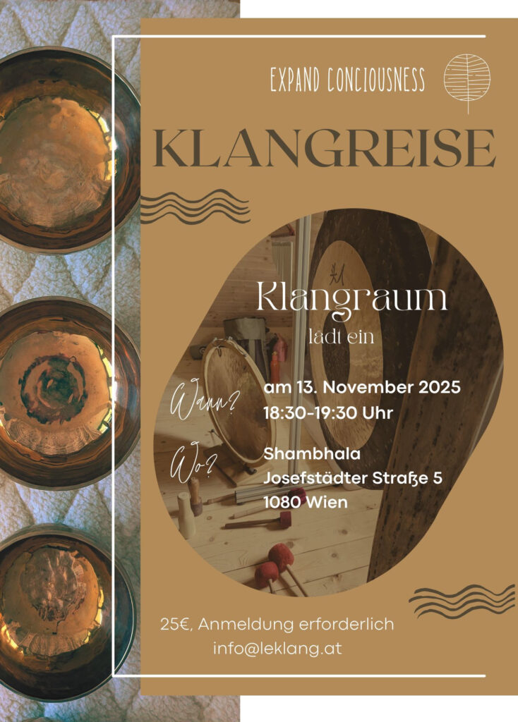 Bei einer Klangreise hörst und spürst du die Klänge verschiedener heilsamer Instrumente und Klangschalen.